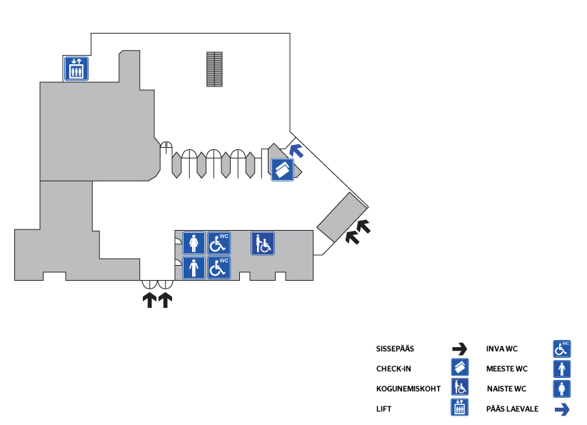 Le terminal de Mariehamn est ouvert pendant les arrivées et les départs des navires. Il ya des points d'enregistrement séparés pour les passagers voyageant avec et sans véhicule.