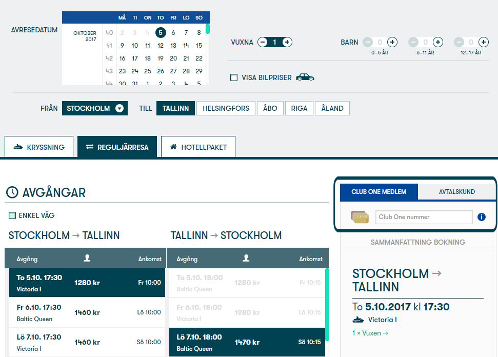 Om du inte har för avsikt att själv resa, behöver du inte fylla i dina Club One-uppgifter när du bokar resan. Det antas att den person som loggat in också åker med på resan.